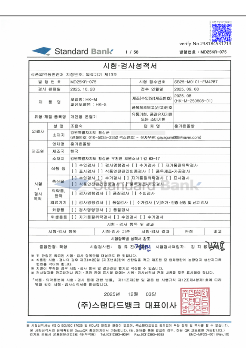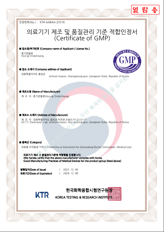 특허 및 인증을 받은 제품입니다.